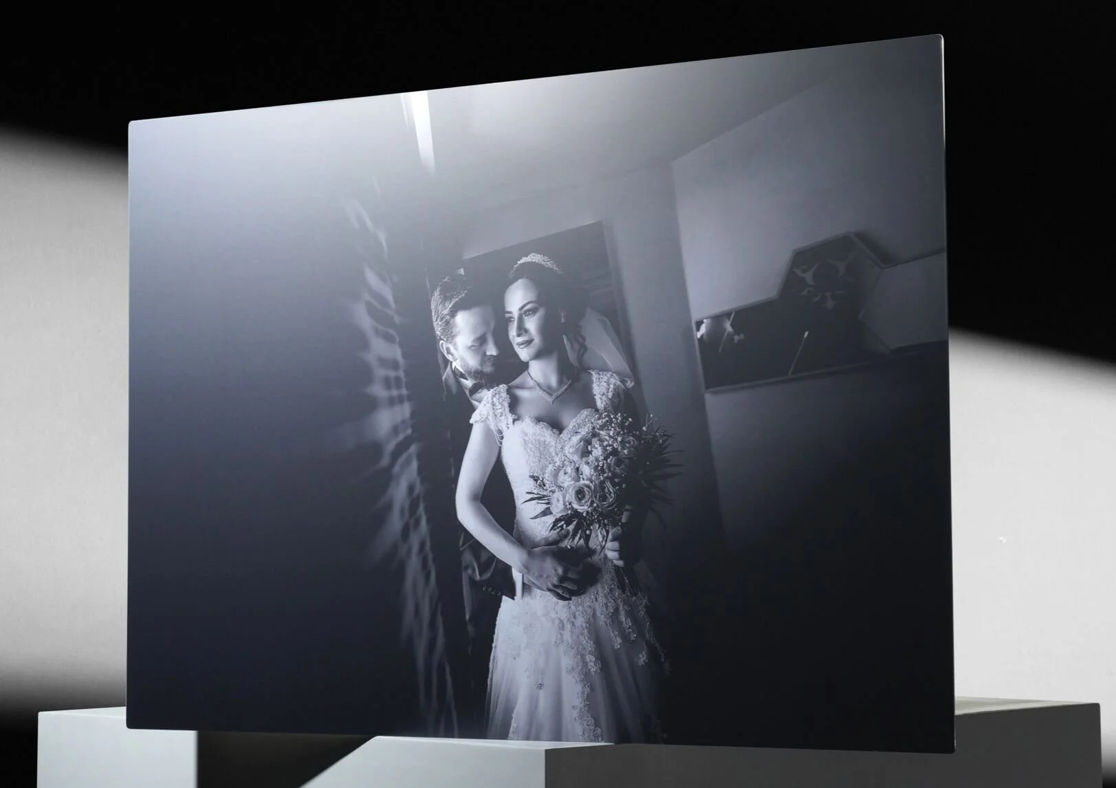 combine real photo paper with a sleek aluminum metal backing. This unique pairing offers the timeless quality of photo paper with the extra strong rigidity of metal.